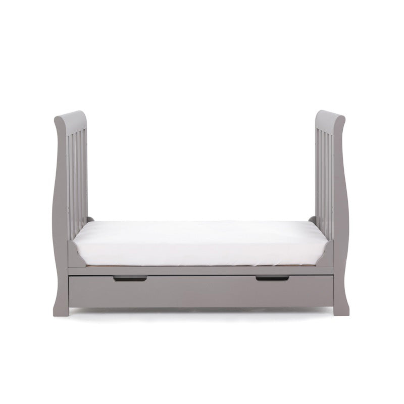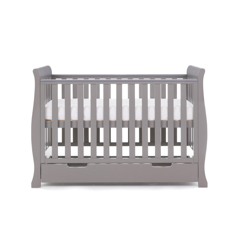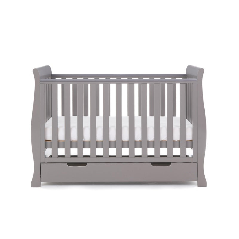 The Obaby Stamford furniture range offers families the perfect combination of style, quality and practicality. The Stamford Mini sleigh cot bed is the perfect addition to any nursery, its elegant sleigh design offers traditional styling while its slatted ends add a contemporary touch.
