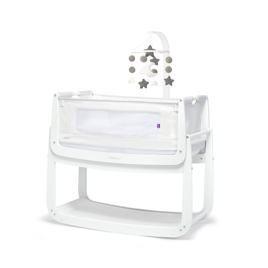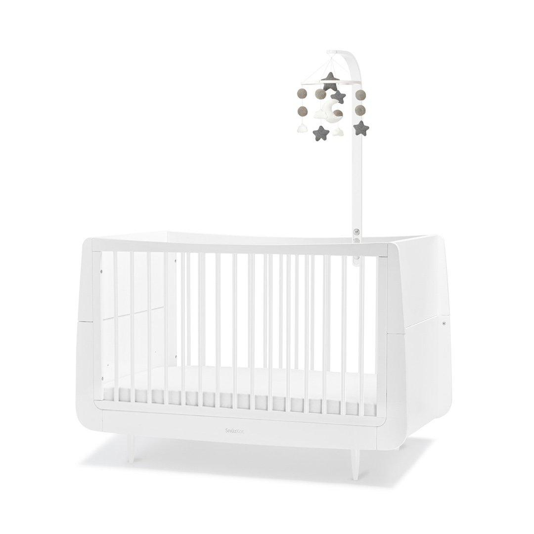 The Snuz Baby Mobile in White inspires sweet dreams and makes for the perfect addition to baby's bedtimes. This sweet sleep accessory encourages relaxation with a celestial array of plush stars, puffy white clouds, and a curvy crescent moon to dance above your little one's head as they drift into the land of nod.