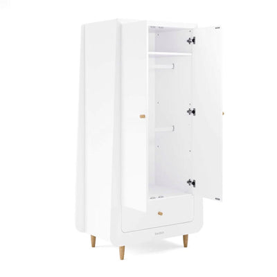 The SnuzKot Skandi Wardrobe in Natural features adjustable shelving and rails, a spacious interior, and a spacious drawer that is perfect for keeping bedding or essentials inside. The wardrobe is designed to last for years, every SnuzKot wardrobe is made without the use of MDF or veneer, and are finished with soft-close doors and drawers to avoid waking your little ones.