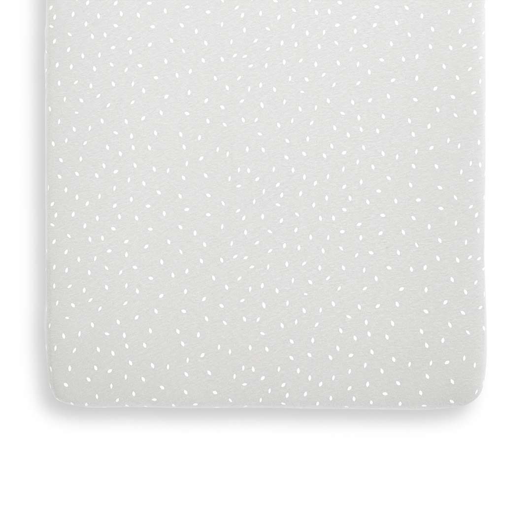 Pop the Little Green Sheep Organic Crib Fitted Sheet in Dove Rice onto your little ones crib mattress - it will help keep their body temperature regulated, thanks to the breathable material.