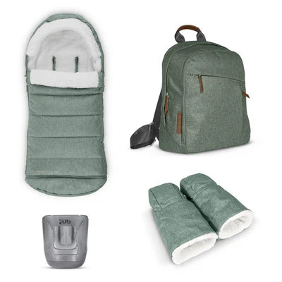 The UPPAbaby Accessory Pack are the ideal accessories to complement your stroller. This package consists of a backpack, handmuffs, footmuff and cup holder.