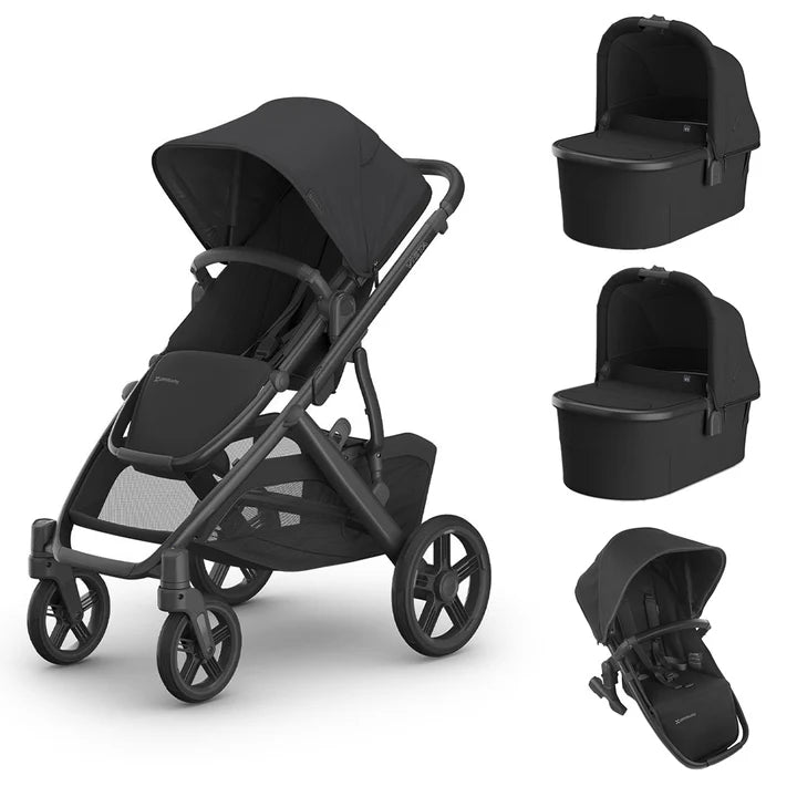 The UPPAbaby VISTA V3 Pushchair Twin in Jake Black is perfect for parents who have either a newborn baby, older child, newborn twins or older twins. There are so many different ways you can adapt the VISTA V3 to your lifestyle by easily changing the seats.