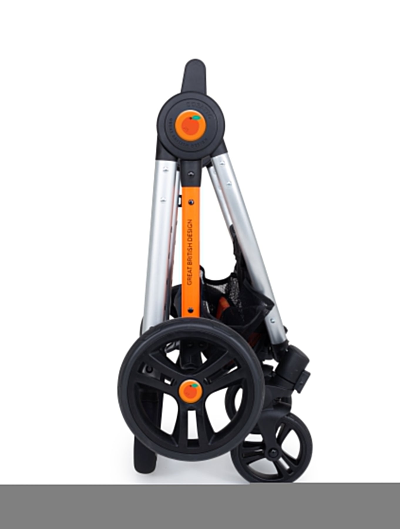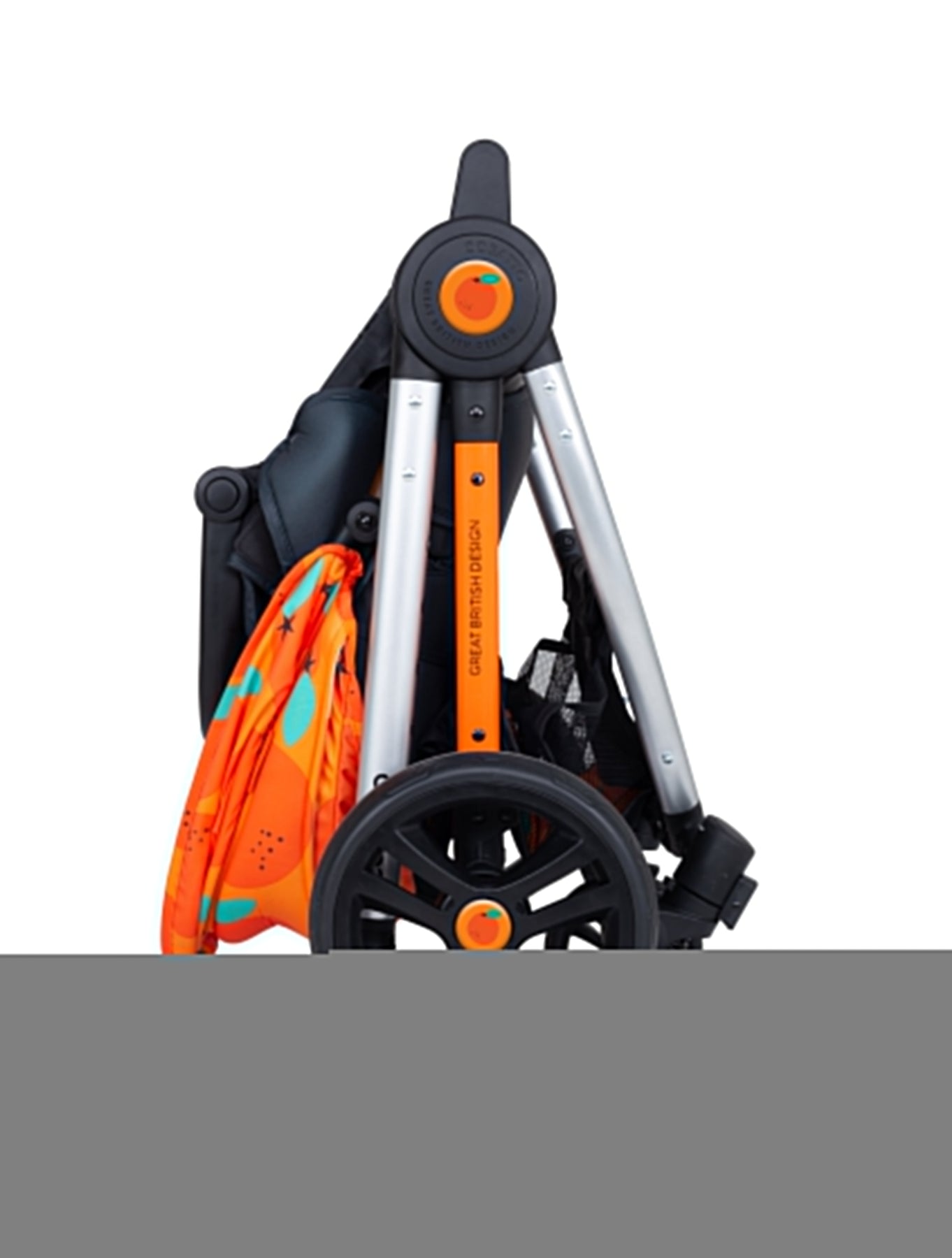 The supercompact, lightweight travel system that folds easily with seat on in either direction, for portability.